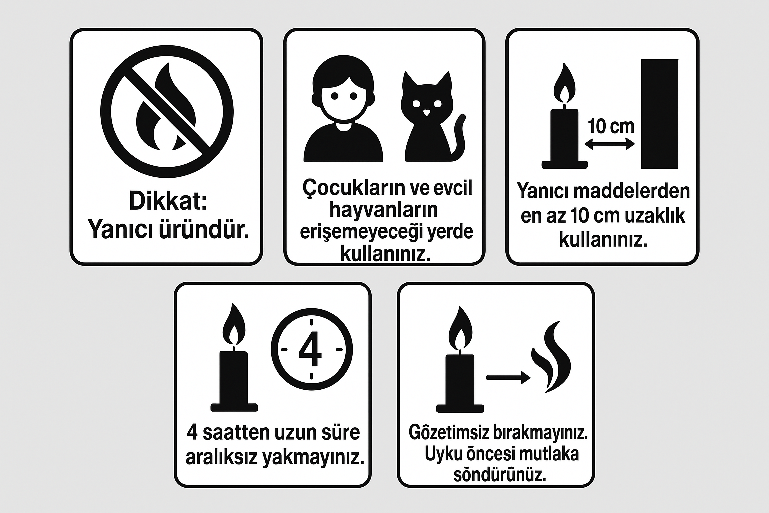 İlk yakışta mum yüzeyinin tamamen erimesini sağlayın. Fitili her kullanım öncesi 5 mm kesin.